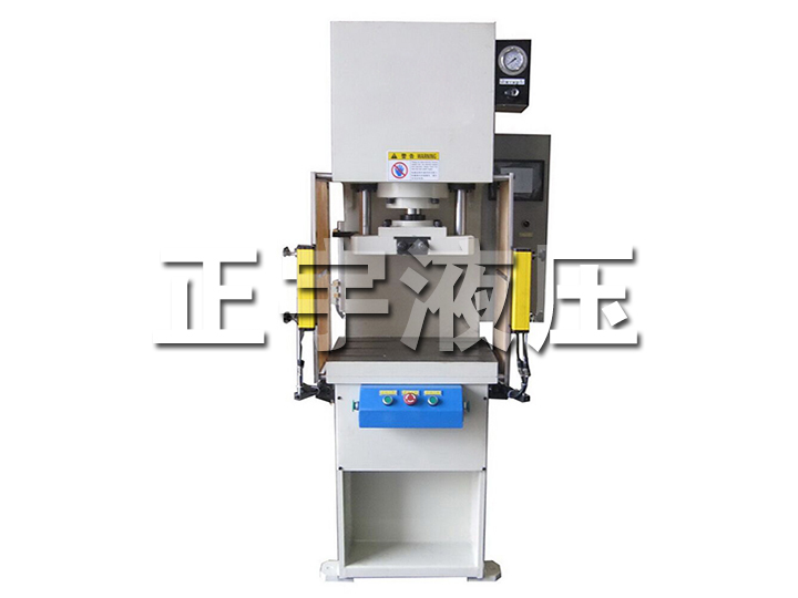 C型油壓機(jī)主要由床身、油缸、液壓系統(tǒng)、電器控制系統(tǒng)等零部件構(gòu)成。床身主要由橫梁、筋板和鋼板壁構(gòu)成,在設(shè)計(jì)時(shí)不但要考慮到結(jié)構(gòu)簡(jiǎn)單,更需要對(duì)橫梁筋板的受壓以及鋼板壁受拉進(jìn)行強(qiáng)度校核;油缸主要由缸體、缸蓋、活塞活塞桿以及密封元件構(gòu)成,設(shè)計(jì)時(shí)不但要進(jìn)行嚴(yán)密的結(jié)構(gòu)以及強(qiáng)度計(jì)算,更為重要的考慮油缸內(nèi)的密封性能,這樣才能使之有效的工作。